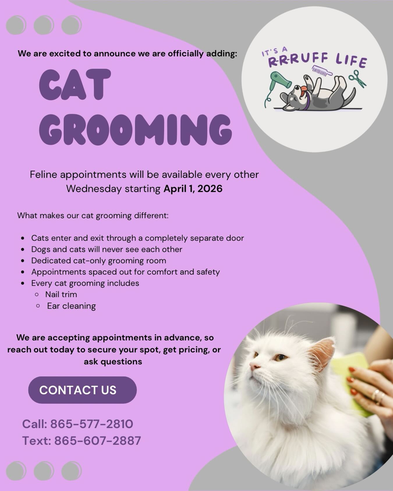 "We just moved to the area from out of state. Our pup’s nails were a little neglected during the move. He had a ruff start in his life and has some major anxiety. Everyone at It’s A R-R-Ruff Life was so kind and the staff took such good care of him. We will definitely be back with both our dogs. Thank you!!!!"